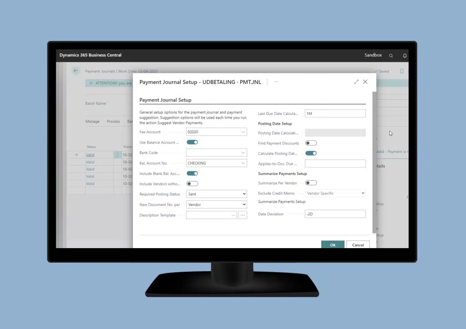 - You have the option to define multiple settings to determine how payment is made in the payment journal;